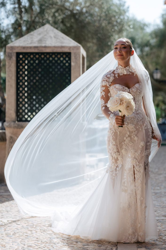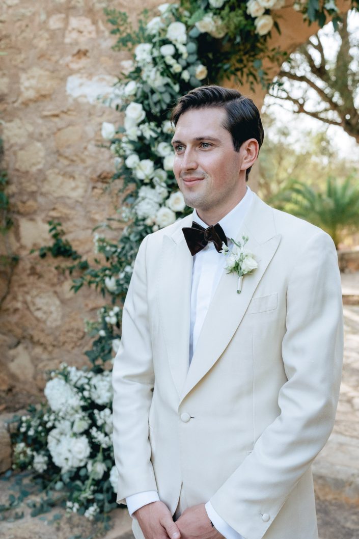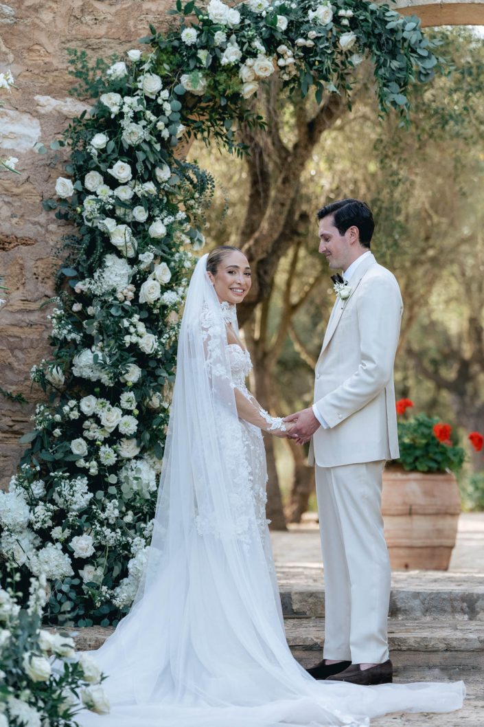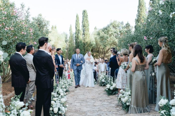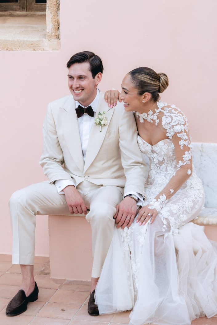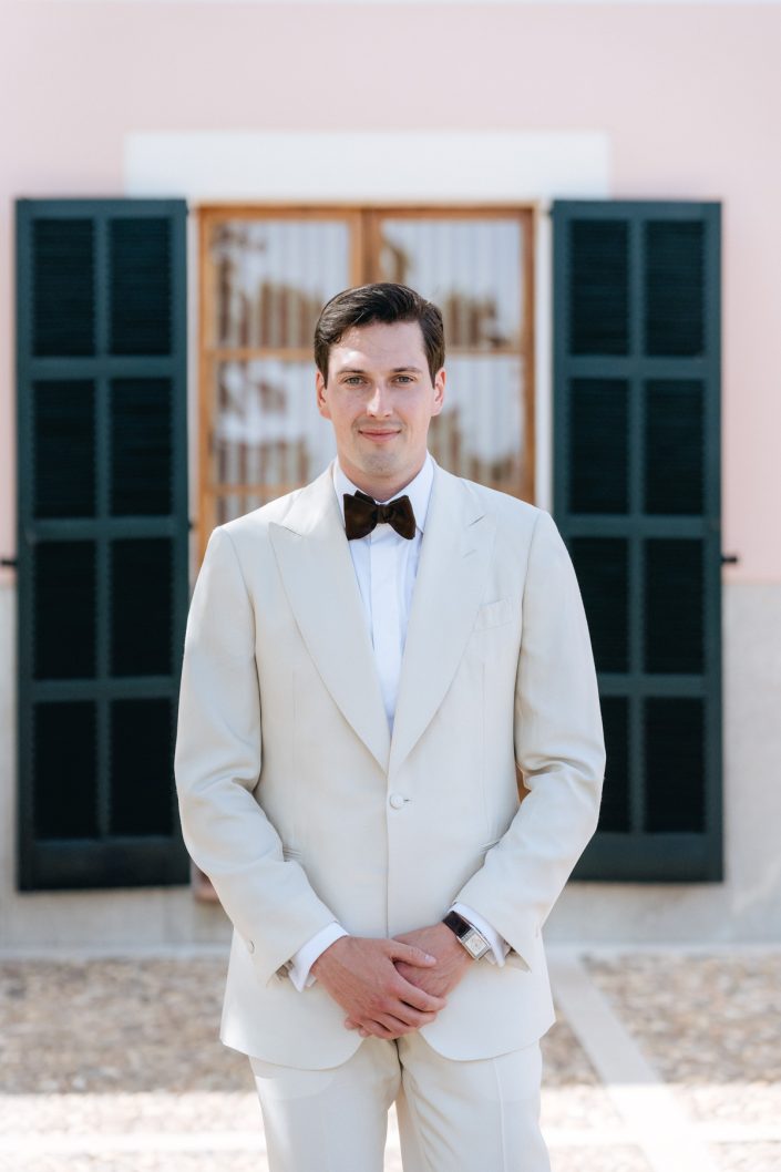 Kristi was the epitome of elegance, her timeless wedding gown perfectly complementing the romantic atmosphere of Son Doblons. Nestled in Mallorca’s serene countryside, the villa’s lush gardens and historic charm provided an intimate and emotional setting for their vows.