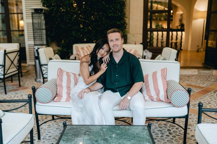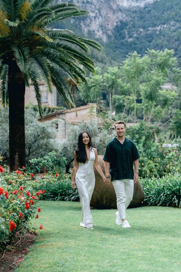 Salin and Matt, a wonderful couple from Chicago, traveled to Mallorca for their engagement session, choosing the breathtaking setting of Belmond La Residencia and the charming streets of Deià as the backdrop for their love story.