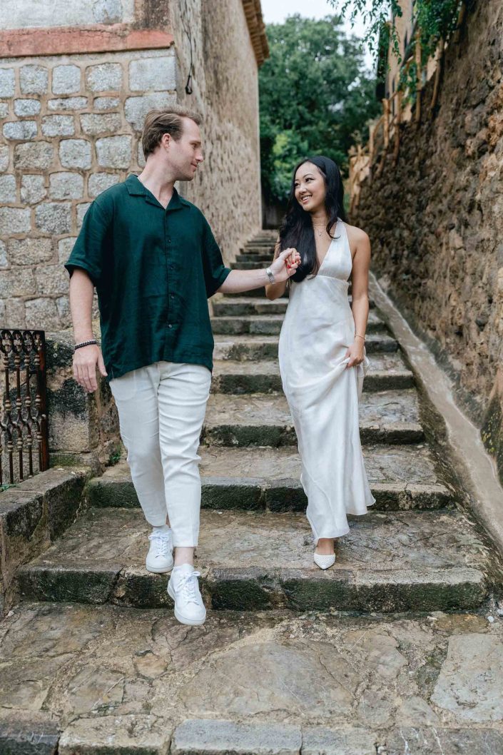 Exploring the cobbled streets of Deià, surrounded by the beauty of the Tramuntana mountains, their engagement session became a true reflection of their love—joyful, adventurous, and filled with unforgettable moments.